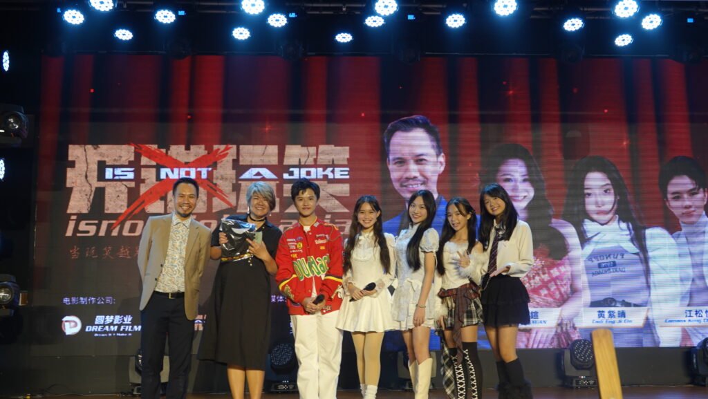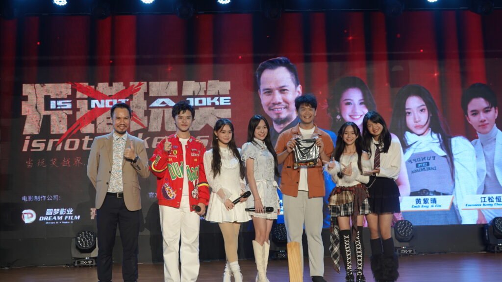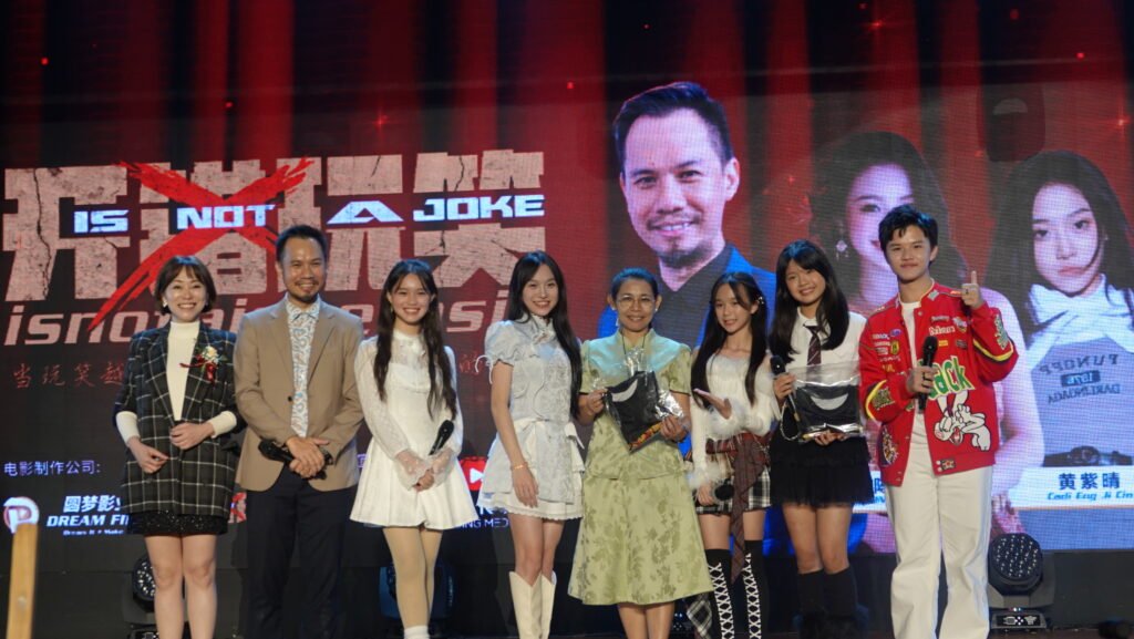 (吉隆坡讯)原本庄重的50周年金禧晚宴,瞬间化身为星光熠熠的“电影发布现场”!由 Pudding Media 布丁传媒 总策划的反校园霸凌电影《开错玩笑》惊喜亮相,导演与主演阵容齐齐登台,不仅分享幕后故事,更掀起全场最高潮时刻。