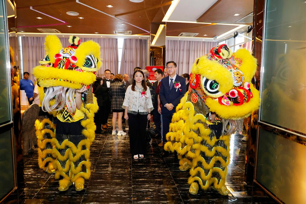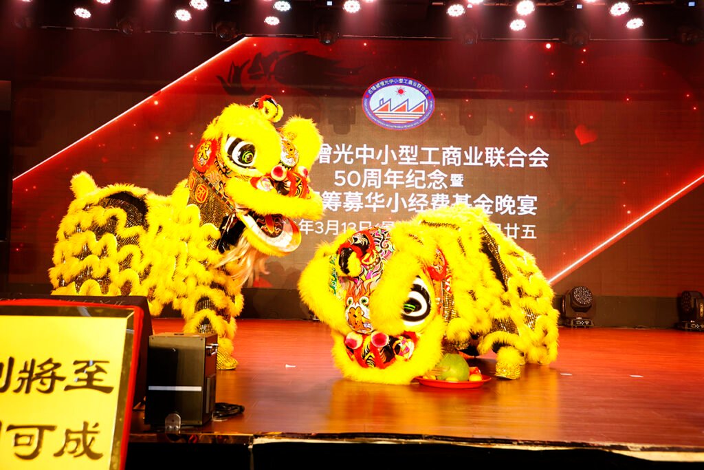 来宾陆续报到,舞狮队伍引领大会嘉宾、剪彩人、广告商及本会理事步入红毯,随后进行精彩的舞台表演及采青仪式,寓意鸿运当头、兴旺发达。