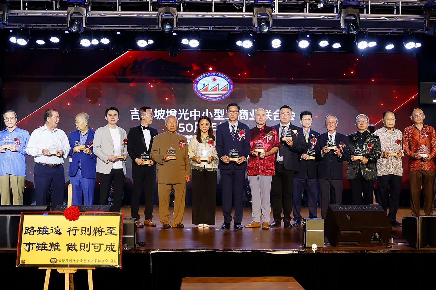 晚宴特别进行慈善拍卖环节,由 正潮乙品Lawrence Kok 慷慨赞助 3尺金牌匾《路虽远,行则将至;事虽难,做则可成》。