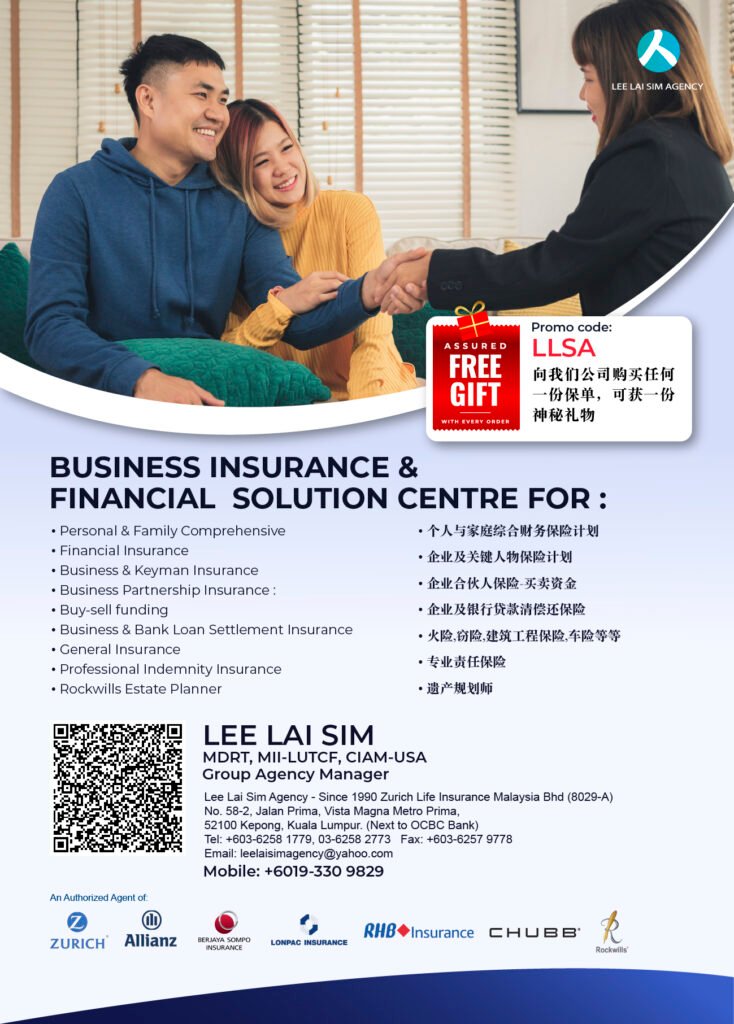 LEE LAI SIM AGENCY 为多家知名保险公司之授权代理,包括 Zurich、Allianz、Berjaya Sompo、Lonpac、RHB Insurance、CHUBB 等,提供多元产品选择与一站式服务,确保客户获得最合适的保障方案。