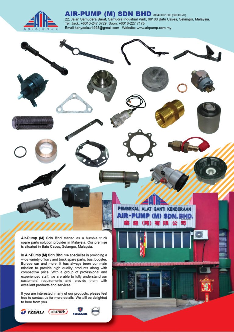 AIR-PUMP (M) SDN. BHD. 起源于马来西亚,是一家以卡车与商用车辆零配件为核心的专业供应商。公司总部位于 Selangor 州 Batu Caves,多年来持续为本地与区域市场提供稳定、可靠的一站式零件解决方案...