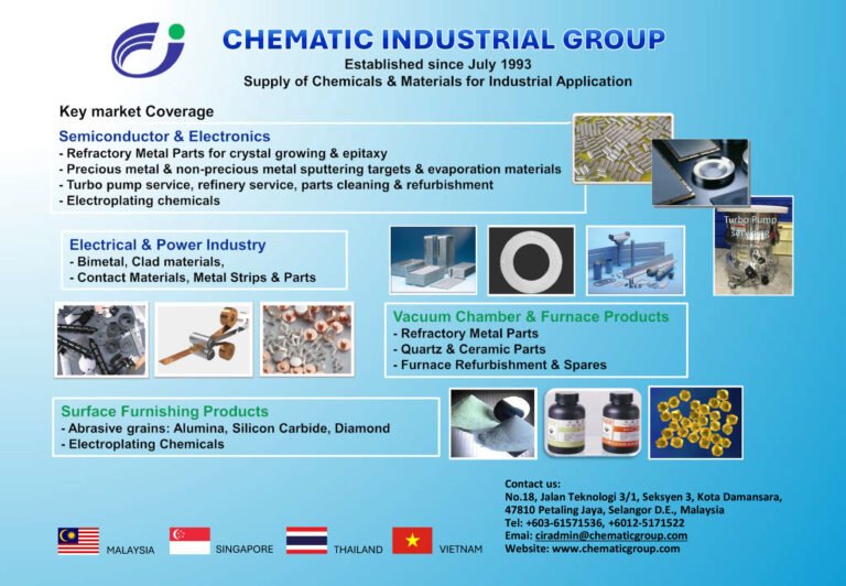 成立于 1993 年 7 月,CHEMATIC INDUSTRIAL GROUP 是一家专注于工业用化学品与材料供应的专业集团,长期服务于高端制造与工业应用领域。凭借三十余年的行业经验,公司在区域市场建立了稳定的技术能力与供应网络,业务覆盖马来西亚、新加坡、泰国及越南...